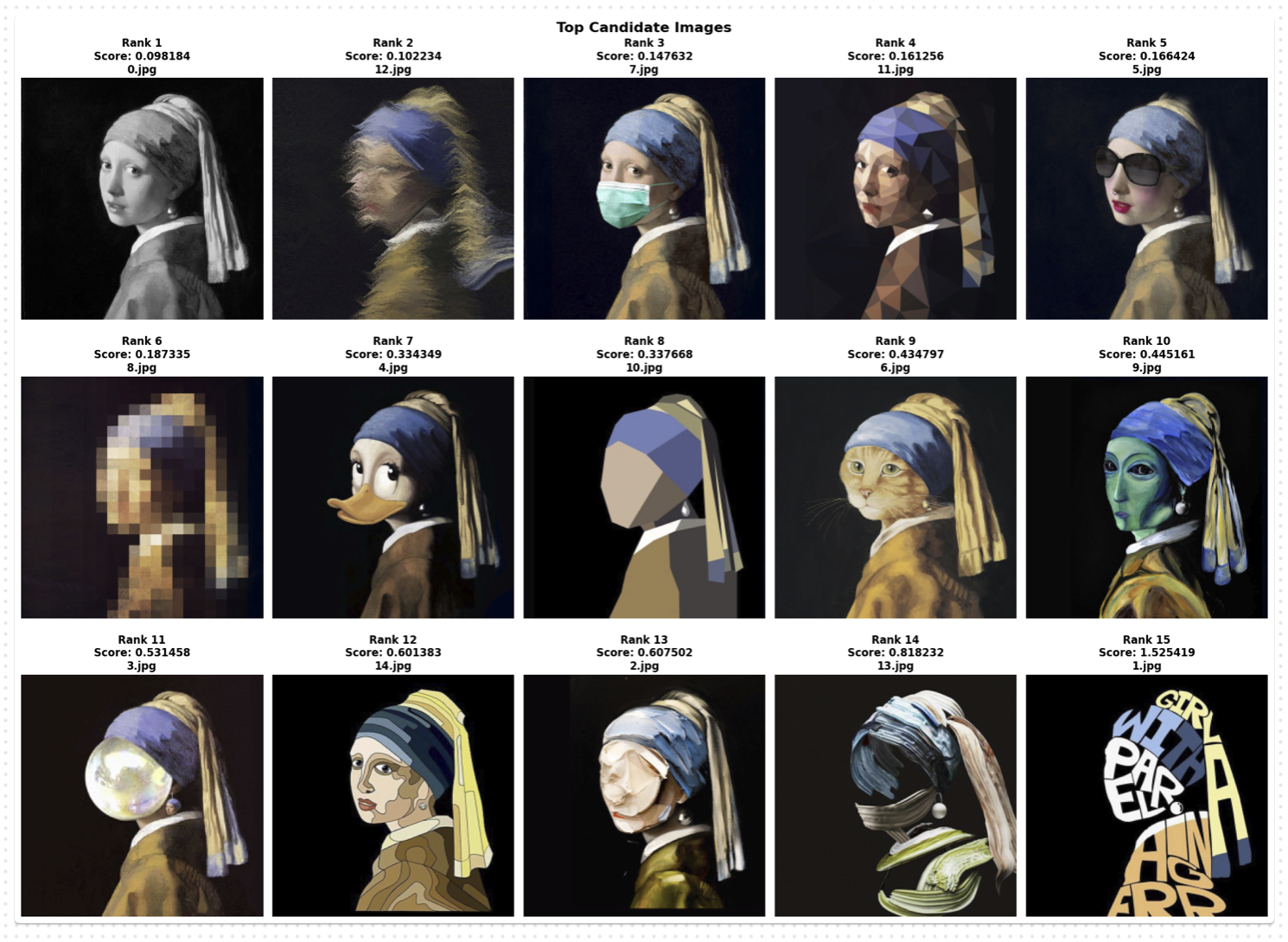 Running the model across all candidates revealed a clear hierarchy of similarity, one that felt natural and fair. The top submissions were those that balanced fidelity to the original with creative interpretation, while the outliers were penalized appropriately. This wasn't just a technical victory, it was a validation of the approach, proving that by training a model to learn the target's manifold, I could create a scoring system that was both robust and human-like in its judgments.